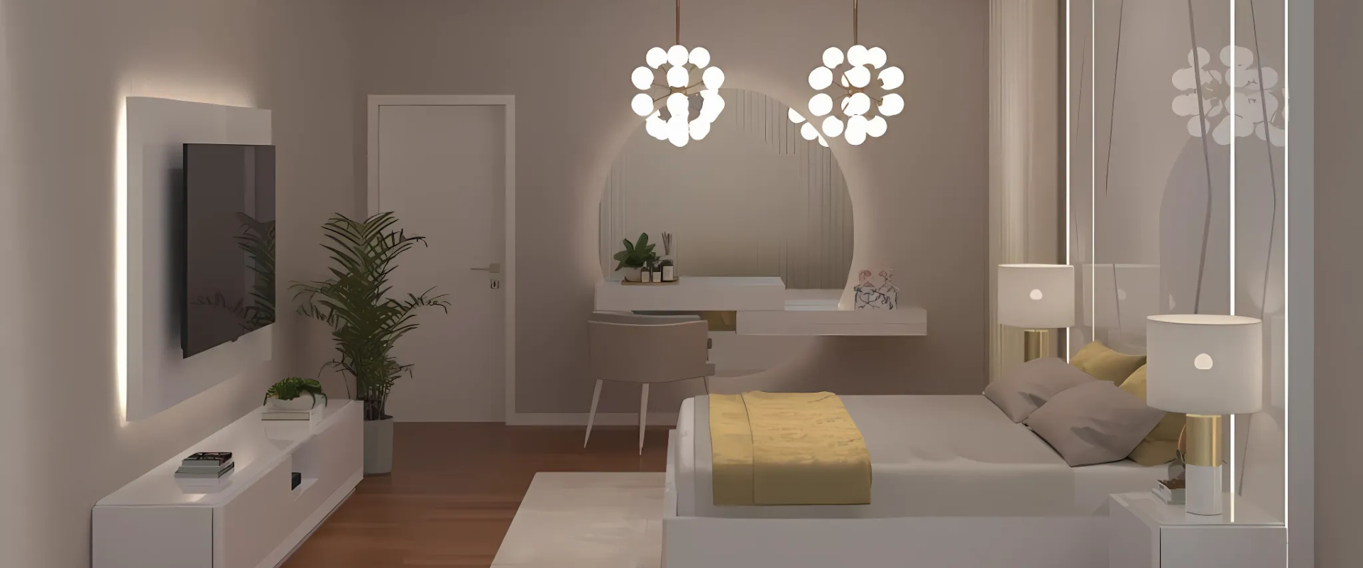 O cliente solicitou um quarto moderno e acolhedor, com tons neutros, iluminação sofisticada e uma composição harmoniosa que valorizasse tanto o conforto como o bom gosto. O espaço deveria transmitir tranquilidade, mas também um toque de requinte, ideal para descanso e momentos de relaxamento.